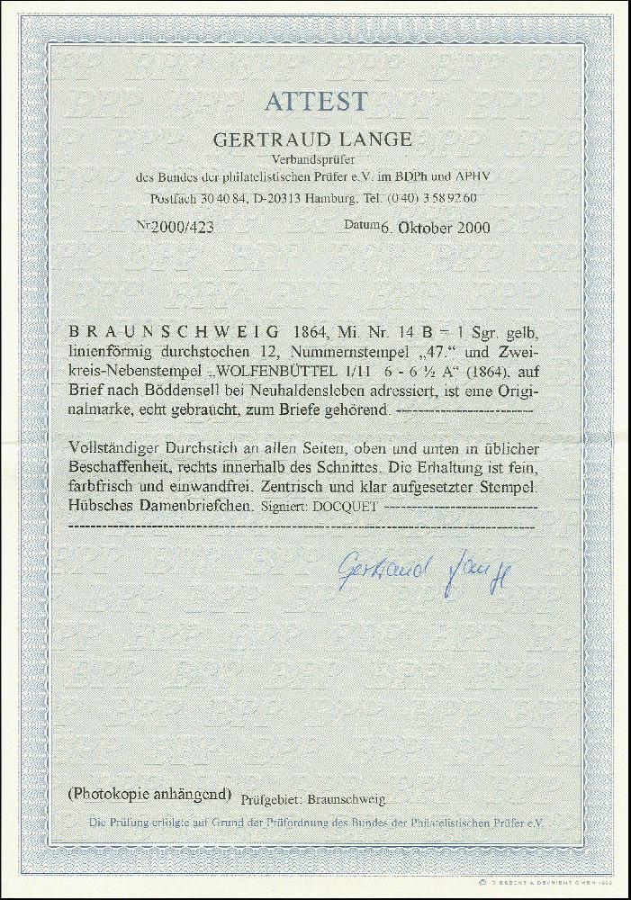 | Prüfer: | Lange, Gertraud (BPP (Bund Philatelistischer Prüfer)) |