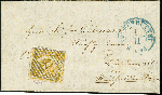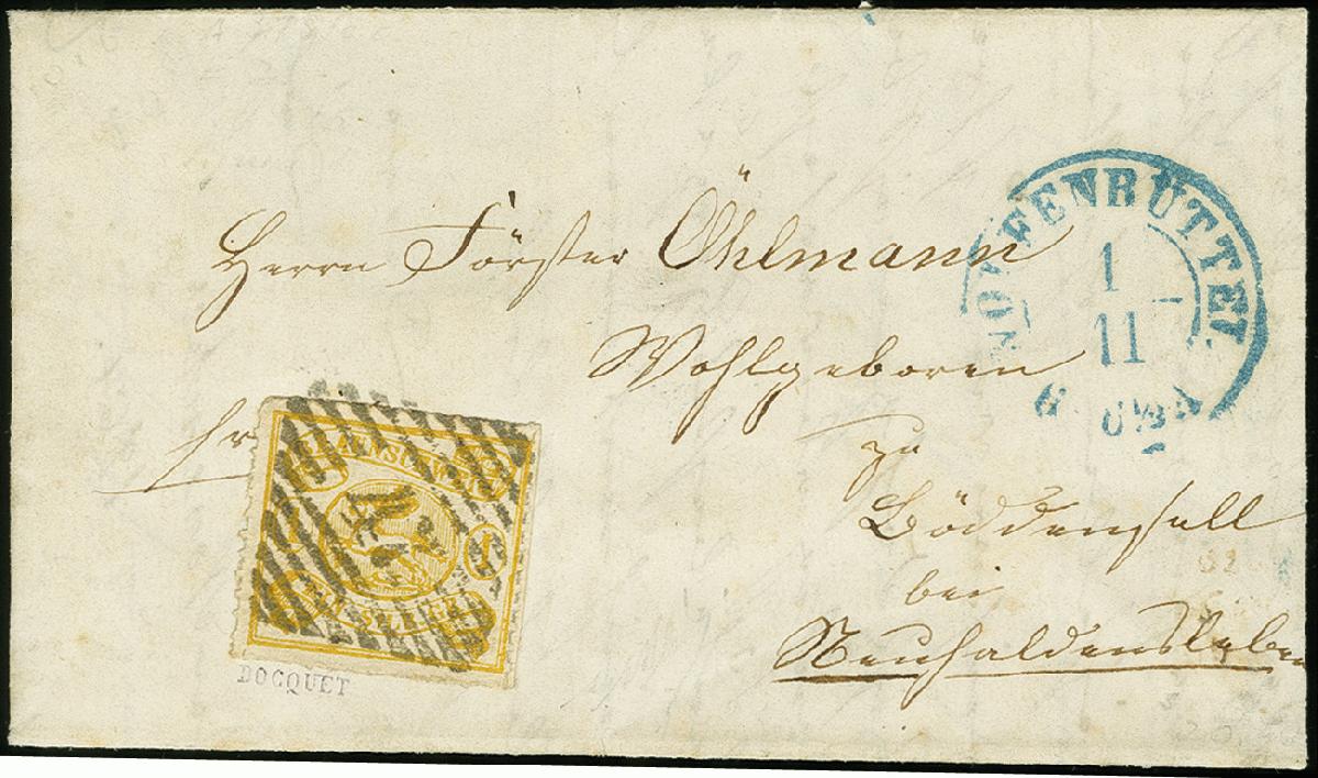 | Zusatzinformationen und Suchstichworte: | 368. Auktion Heinrich Köhler 26.-30. März 2019 Los 3387 1 Sgr. gelb durchstochen 12, allseits voller Durchstich, rechts Scherentrennung außerhalb, mit zentrisch aufgesetzter Nr. "47" und nebengesetztem blauen DKr. "WOLFENBÜTTEL 1/11" (1864) auf kleinem Faltbrief nach Böddensell bei Neuhaldensleben, schönes Stück, private Signatur und Fotoattest Lange BPP (2000) Zuschlag 240,00 EUR |
