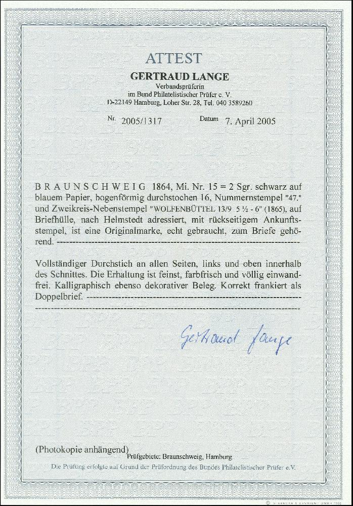 | Prüfer: | Lange, Gertraud (BPP (Bund Philatelistischer Prüfer)) |