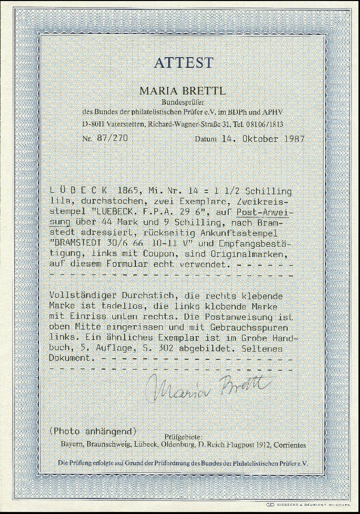 | Prüfer: | Brettl, Maria (BPP (Bund Philatelistischer Prüfer)) |