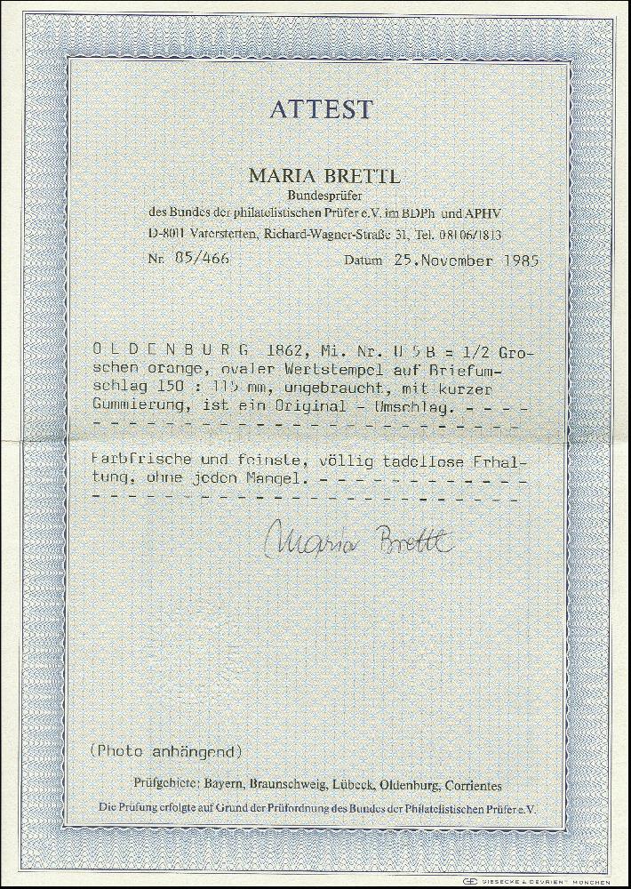 | Prüfer: | Brettl, Maria (BPP (Bund Philatelistischer Prüfer)) |