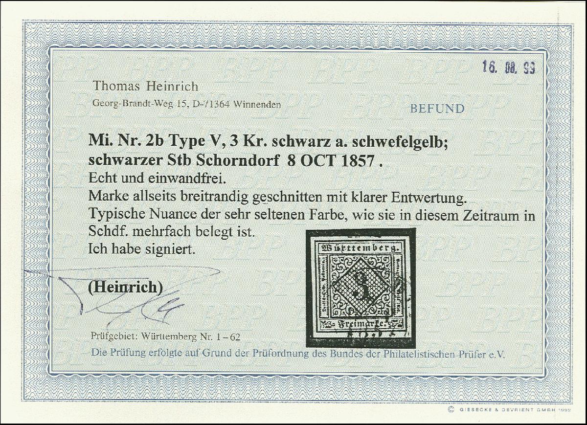 | Prüfer: | Heinrich, Thomas (BPP (Bund Philatelistischer Prüfer)) |