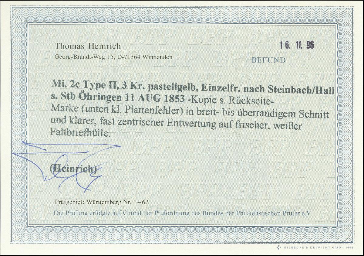| Prüfer: | Heinrich, Thomas (BPP (Bund Philatelistischer Prüfer)) |