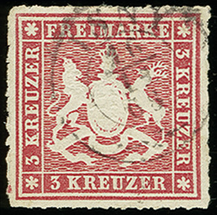 | Zusatzinformationen und Suchstichworte: | 368. Auktion Heinrich Köhler 26.-30. März 2019 Los 3532 3 Kr. lilarot in schöner tiefer Nuance, farbfrisch und allseits gut durchstochen mit schöner Prägung, leicht gestempelt "ISNY 16/11 68"; eine seltene Marke in tadelloser Erhaltung, Fotoattest Heinrich BPP (1998) Zuschlag 900,00 EUR |