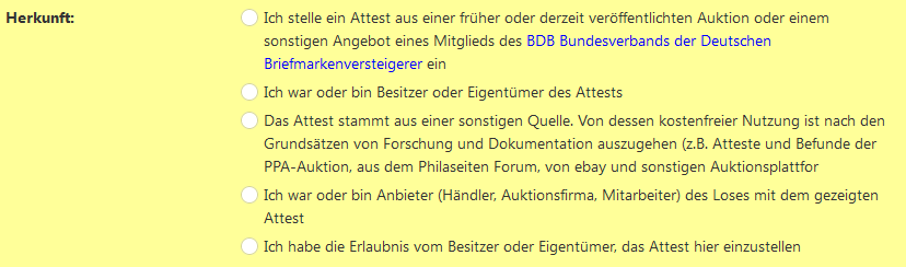 Bitte klicken Sie an, ob Sie der Besitzer/Eigentümer oder Anbieter des Loses mit dem gezeigten Attest sind oder ob Ihnen die Erlaubnis des Besitzers/Eigentümers vorliegt, das Attest in der Atteste-Datenbank einzustellen.